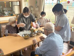 ソレイユ思川では、まだまだ暑い夏に、少しでも涼しんでいただきたく、カラフルゼリージュース作りを行いました!!!