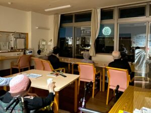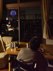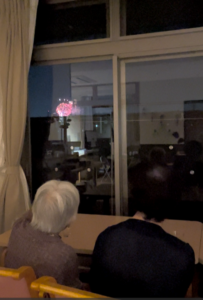 ソレイユ思川では、施設内からも綺麗に花火が見られるため、施設内の窓から観賞しました!!!