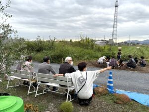 子どもたちがさつまいもを掘っている様子を見守りながら、「子どもたちが元気いっぱい掘ってるね~」、「大きいさつまいもが掘れるんだね~」と、微笑む姿が見られました😊