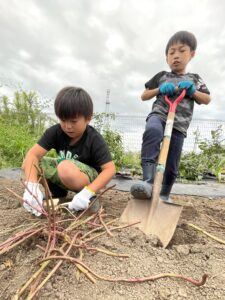 さつまいもが掘れると、「やっと掘れた~!!!!」「おっきなさつまいも掘れたよ!!!」など大盛り上がり🎉✨