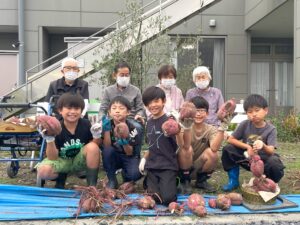 学童保育クラブの皆さんには、お土産に自分たちで収穫した、さつまいもを持ち帰っていただきました!!!