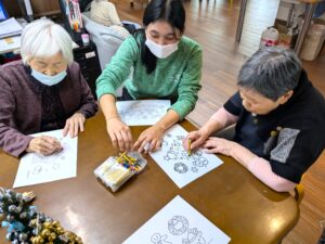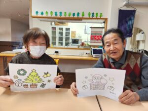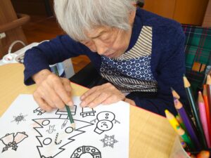 ソレイユ思川では、今月クリスマスがあるため、クリスマスの装飾飾りや塗り絵を行いました!!!