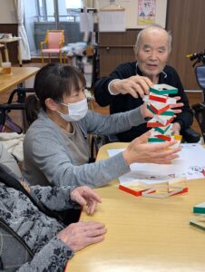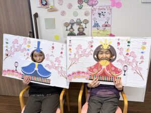 ソレイユ思川では、3月3日のひなまつりに、顔出しパネルや菱餅積み上げゲームを行いました🍡